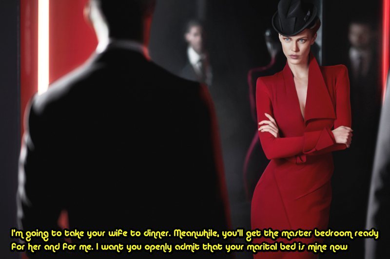 He then starts pulling off his pants. Fuck, I cant let this happen. But hell, I am kinda curious. If he has a small dick then I can just laugh at him. But his cock springs forth, and I involuntarily breath out “oh my god” and lick my lips. He was huge, and large, the kind of thick juicy cock you’d see in a porno. Is this what this was now? A sexual situation? I certianly felt sexy, with my tits jutting out and his manly, muscular body flexing as he turned me around. Jesus, how did he get so dominant, and why is it turning me on so much? I would never think of being this forward and yet its just making my panties wetter and wetter and making me feel more girly.